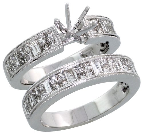 title]Check Out 14k White Gold Semi-Mount Diamond Ring 2-Piece Wedding Set for Her, w/ 1.70 Carats Baguette & Invisible Set Diamonds, 3/8 in. (9mm) wide [/title]